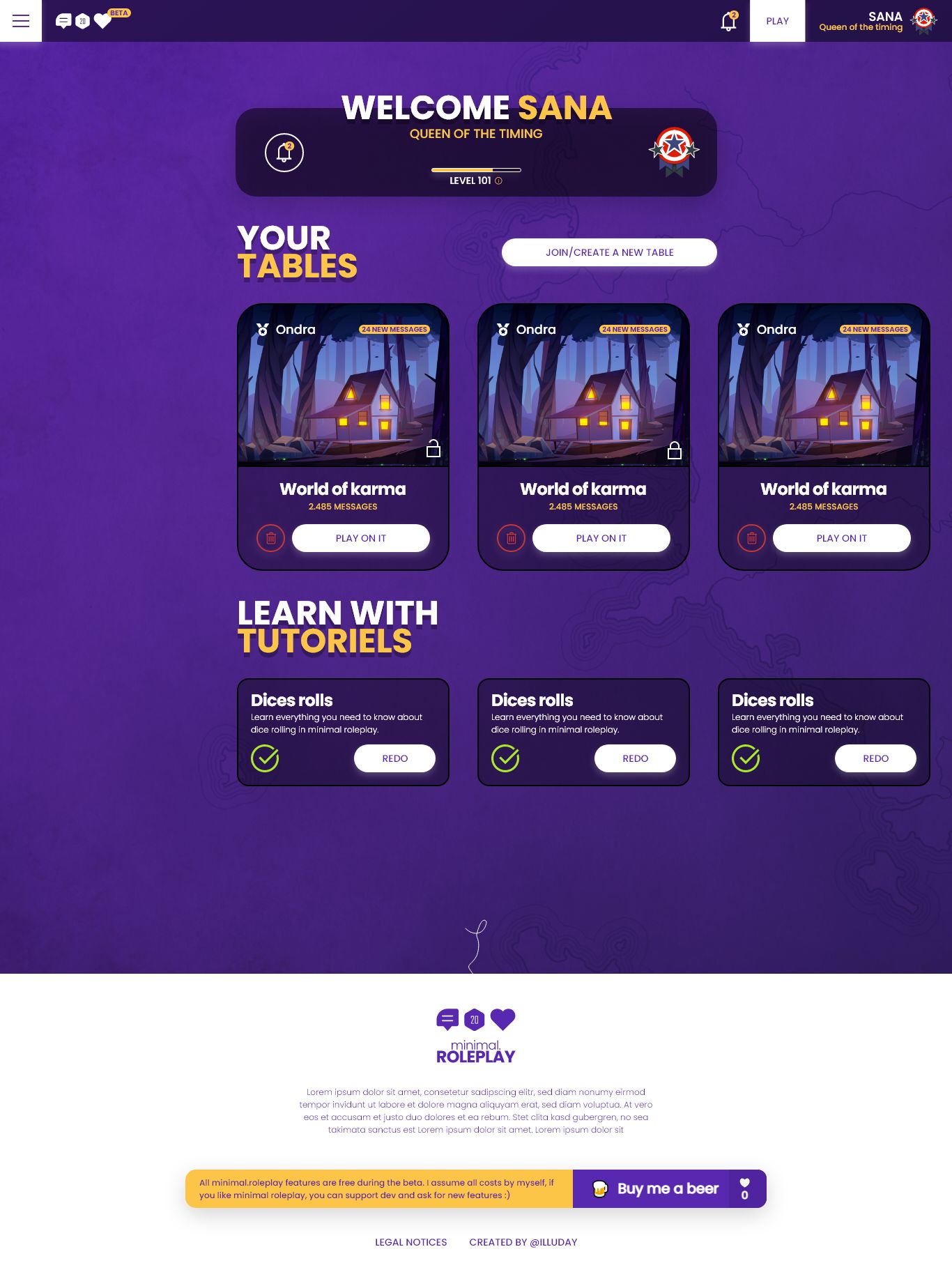 Minimal Roleplay est une interface révolutionnaire de jeux de rôle textuel asynchrone en ligne.