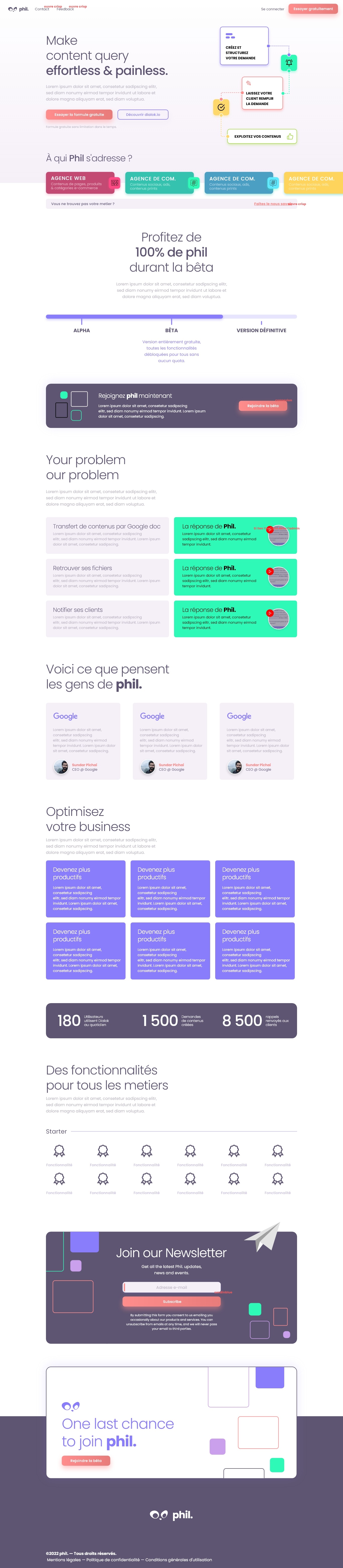 Phil est un logiciel en tant que service qui permet de concevoir des formulaires et de faciliter la récupération de données auprès de la clientèle d'agences web.